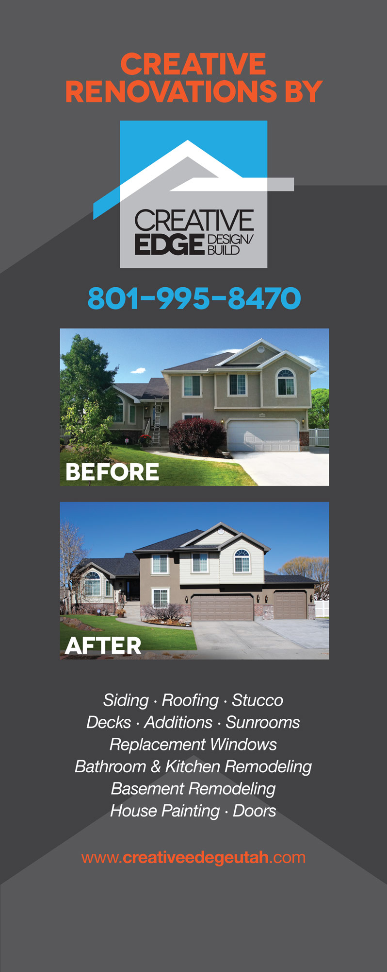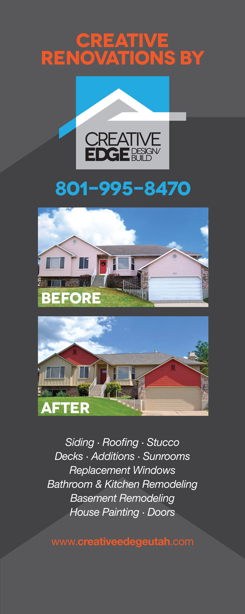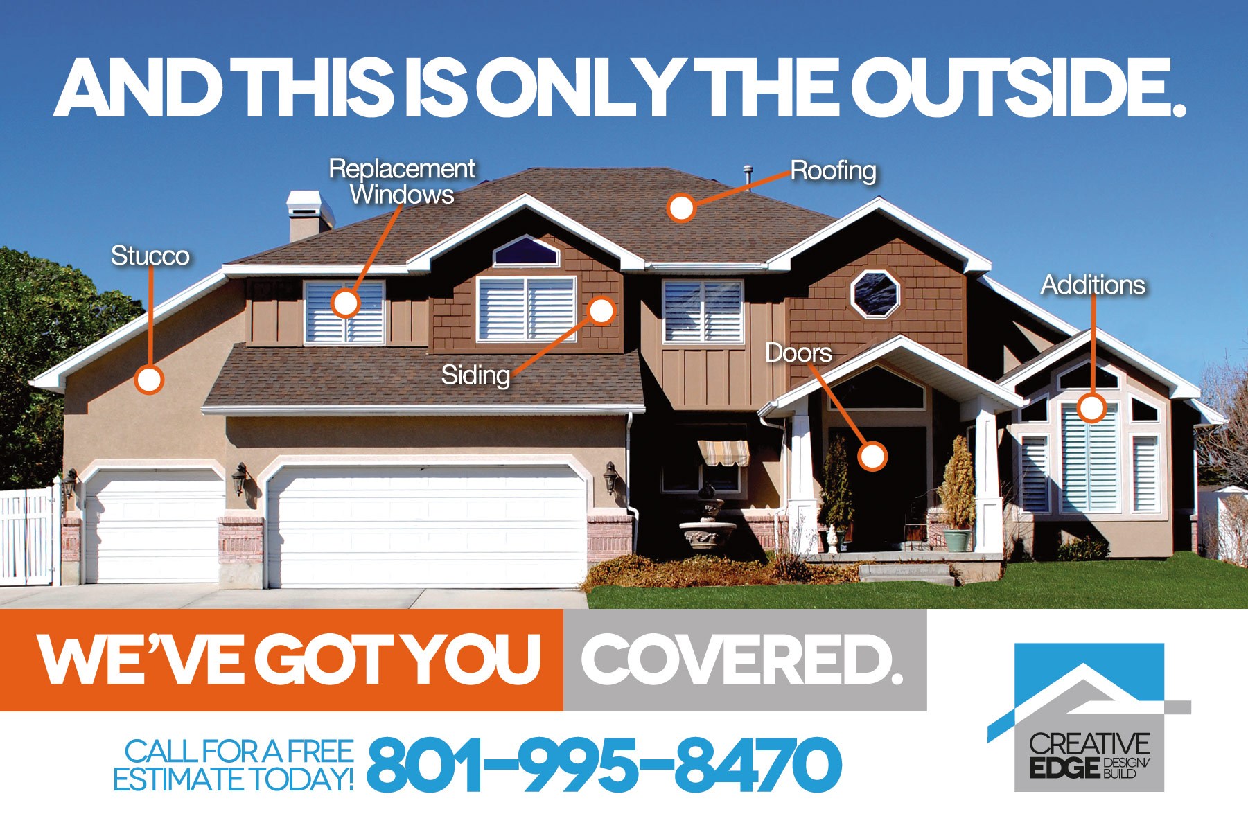 Client Creative Edge Design/Build Logo Design, Large-Format Print, Print Art Direction, Graphic Design, Illustration Logo Design Large-Format Print 10′ x 10′ Vinyl Banner 33″ x 80″ Retractable Banners Print Business Card, Front Business Card, Back #10 Windowed Envelope 4″ x 6″ Intro Postcard -