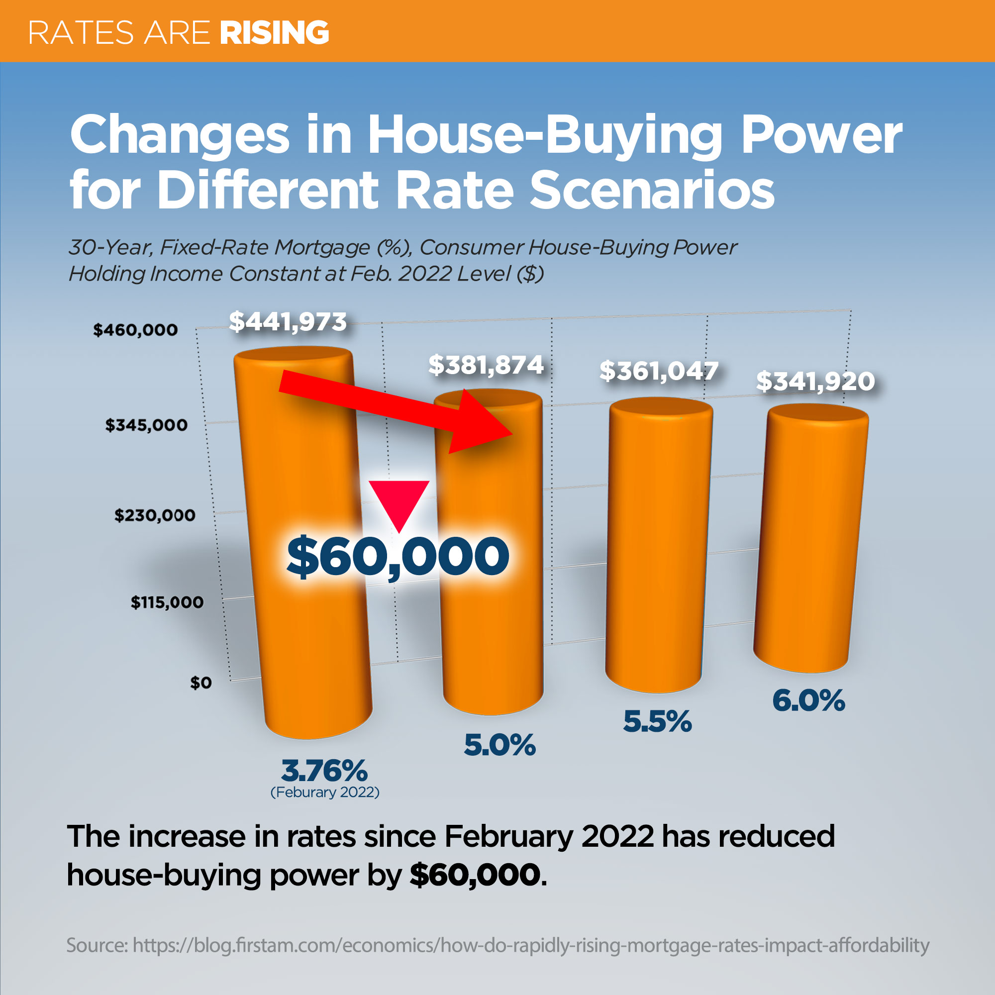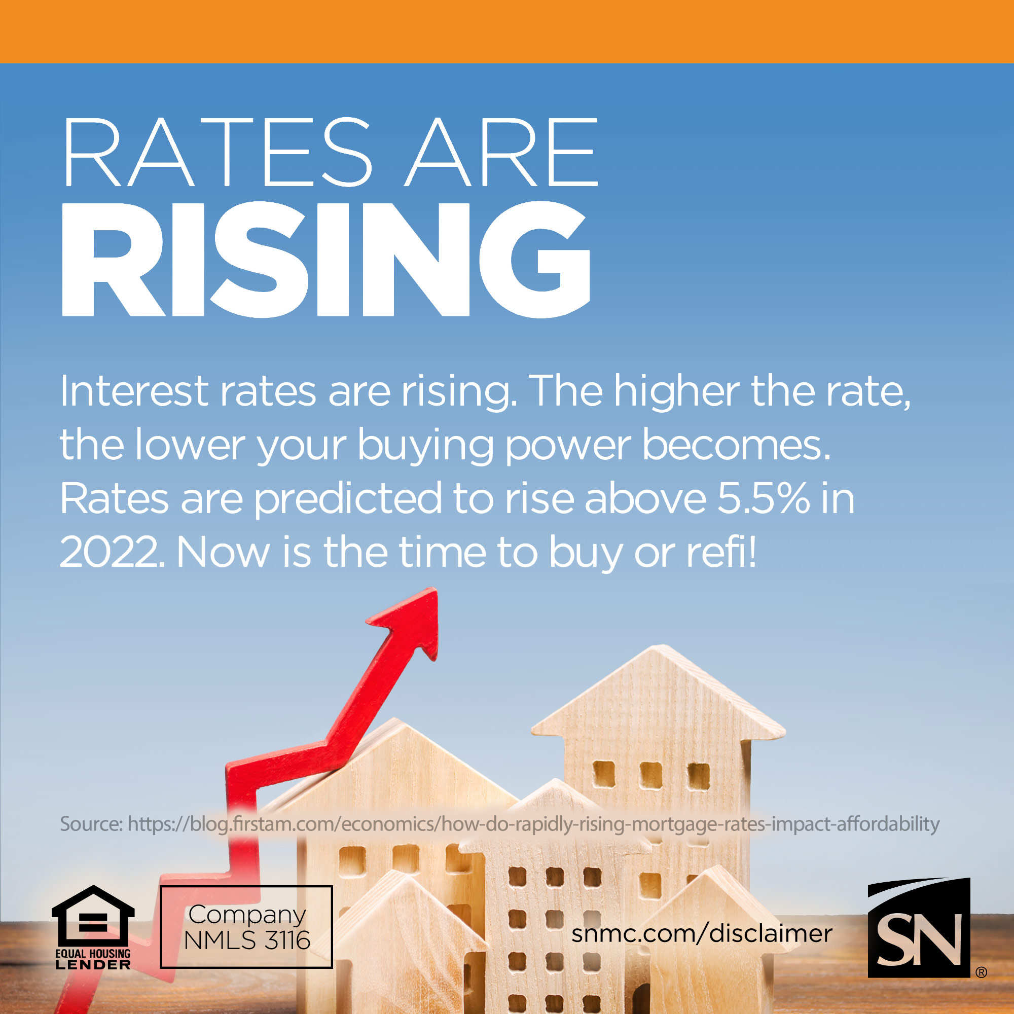 The "Rates Are Rising" campaign was an educational piece that the Loan Officers could use to help their social visitors learn more about the ramifications of rising interest rates and what that means for a potential mortgage loan or refinance. I used some stock imagery and created a chart based on data provided by the requesting Loan Officer, as well as an expert's quote about the scenario, to set up the different slides of the scroll.
