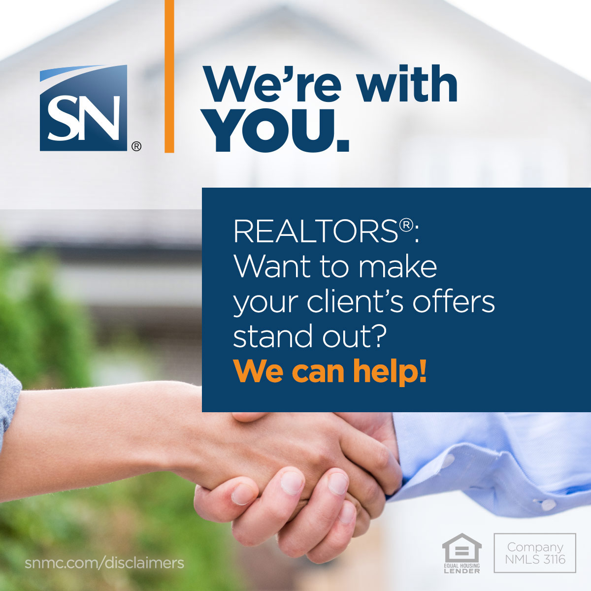 This was a piece that was made to target a Loan Officer's local REALTORS®, letting them know that the LO is there to help them make sure their client's offers stand out to potential sellers. I kept the design simple, with a bold headline and a handshake photo as the background.